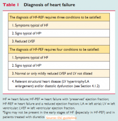 Heart Failure (HF) is defined, clinically, as a syndrome in which patients have typical symptoms (e.g. breathlessness, ankle swelling, and fatigue) and signs (e.g. elevated jugular venous pressure, pulmonary crackles, and displaced apex beat) resulting from an abnormality of cardiac structure or function.